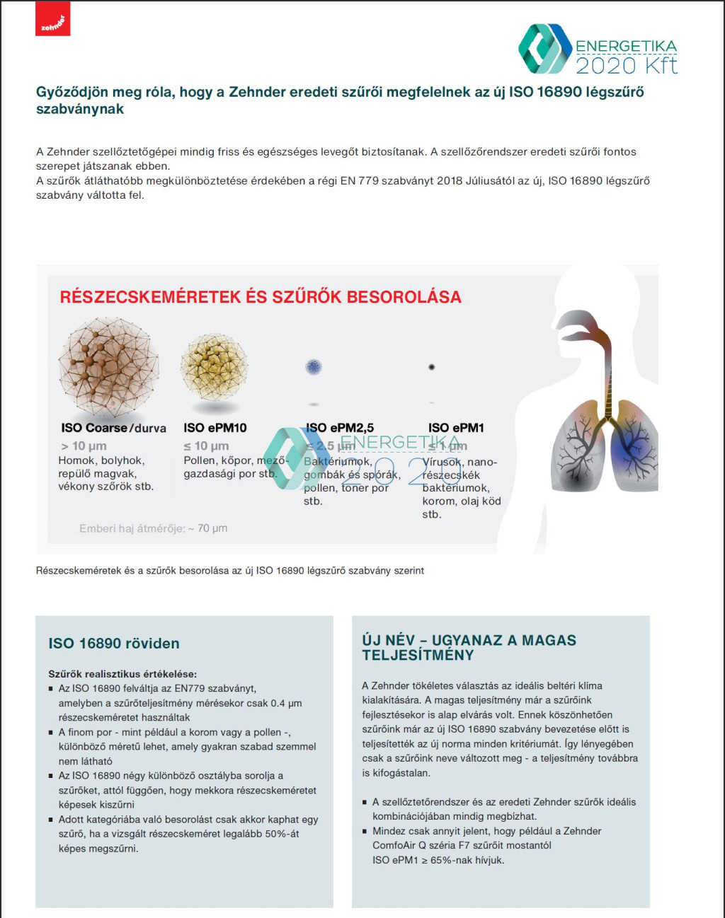 • Befúvás szűrő besorolás az érvényes szabvány szerint: ISO ePM1