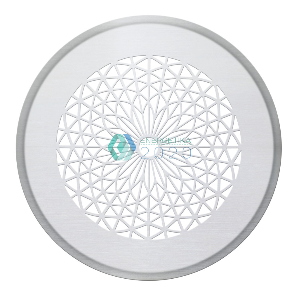 Zehnder - Formatervezett, kerek takarórácsok elszívott levegőhöz Szűrővel, DN 125 csatlakozás, Ø 160 mm, CLRF/TVA-hoz. Használható falba és mennyezetbe. Sacré coeur nemesacél (nem használható padlórácsként)
